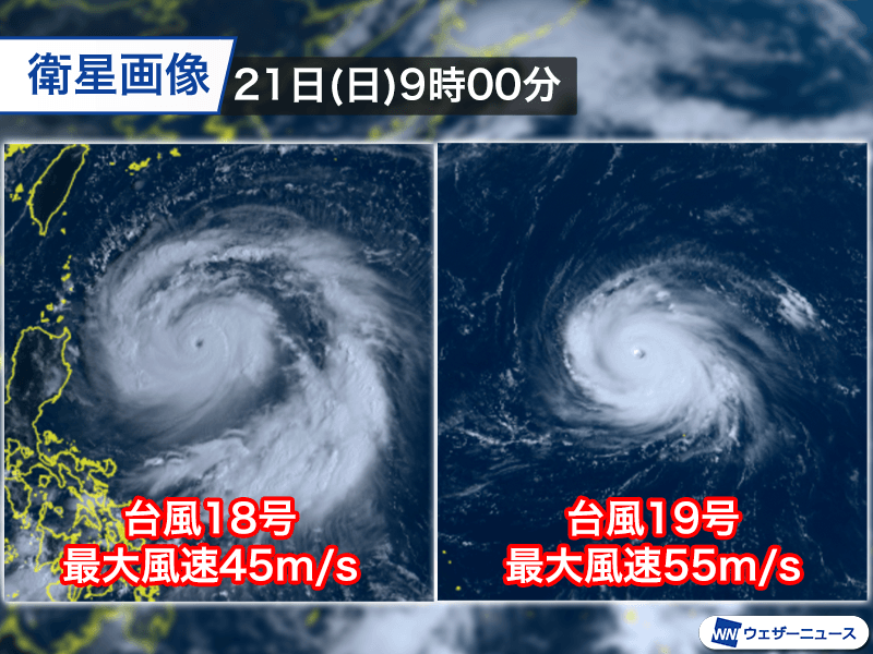 台風18号、19号は急速発達 19号は今年初の「猛烈」な勢力に