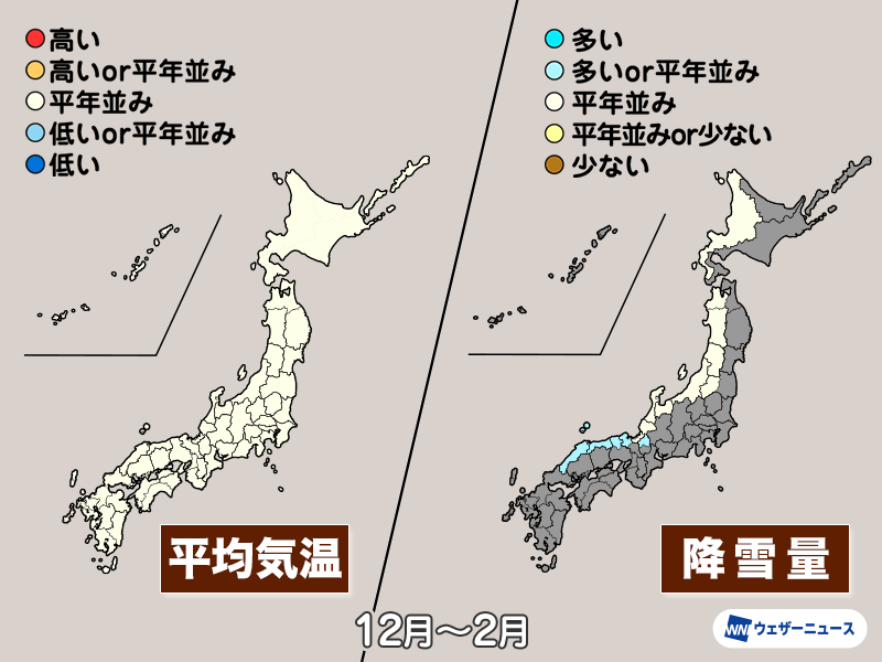 12月は冬型の気圧配置が強まるタイミングがあり、冬の訪れは順調です。12月〜2月の3か月を通してみても、気温は平年並みで冬らしい寒さになる見込みです。