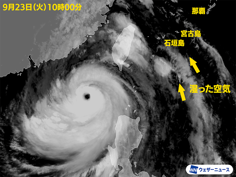 また、台風が西に離れる過程のため、南東から暖かく湿った空気の流れ込みやすい状況が続きます。先島諸島を中心に断続的に雨雲が通過して、ザッと強く降ることがありそうです。日差しの届くことがあっても油断せず、急な雨に注意してください。
