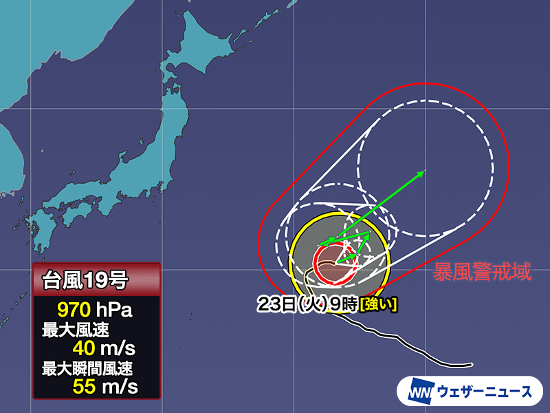 台風19号(ノグリー) 迷走ののち次第に離れる見通し