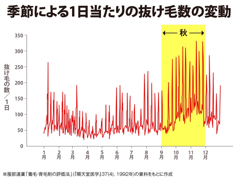 「断言できるわけではありませんが、秋に抜け毛が増えるのは遺伝子にそういった情報が残っているからだと言われています。犬などの動物が秋から冬にかけて毛変わりのために抜け毛が増えるのと同じように、人間にも毛変わりがあるのです。したがって、抜け毛が増えても、基本的にはその分毛が生えてきます」(桑名先生)
