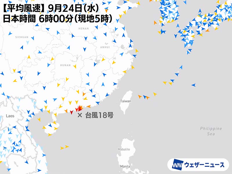 ▼台風18号 9月24日(水)6時