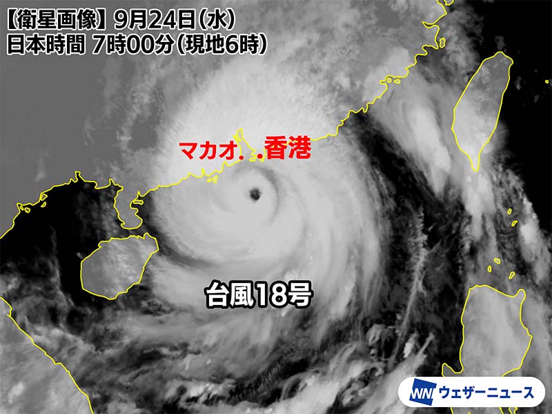 非常に強い台風18号が香港に最接近 50m/s超の暴風観測 シグナル10を発出