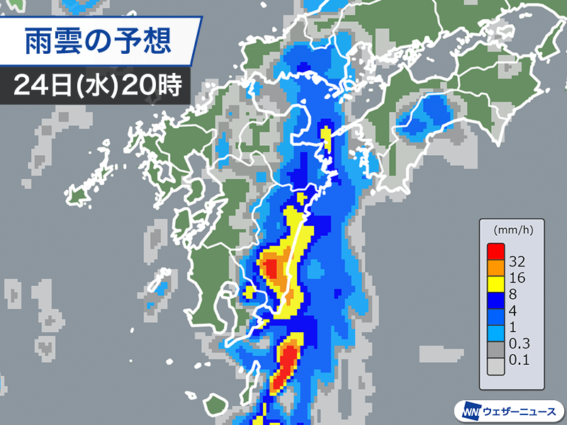九州、四国の太平洋側を中心とした断続的な雨は、明日25日(木)の朝にかけて続くとみられます。断続的に雷を伴った激しい雨となるおそれがあり、道路冠水や河川の増水に注意が必要です。