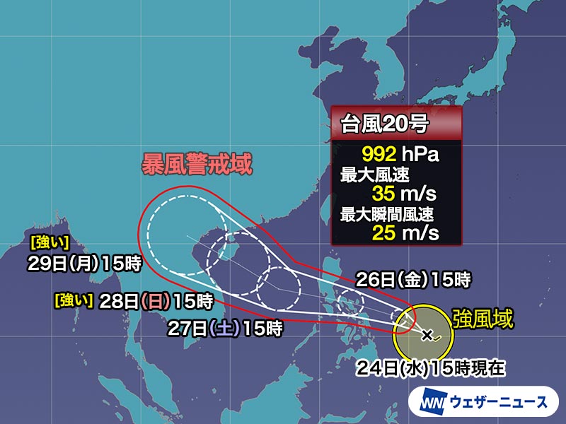▼台風20号 9月24日(水) 15時