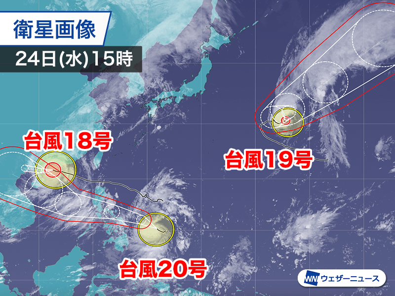 3つの台風 台風18号は中国方面へ 台風19号、20号は影響なし