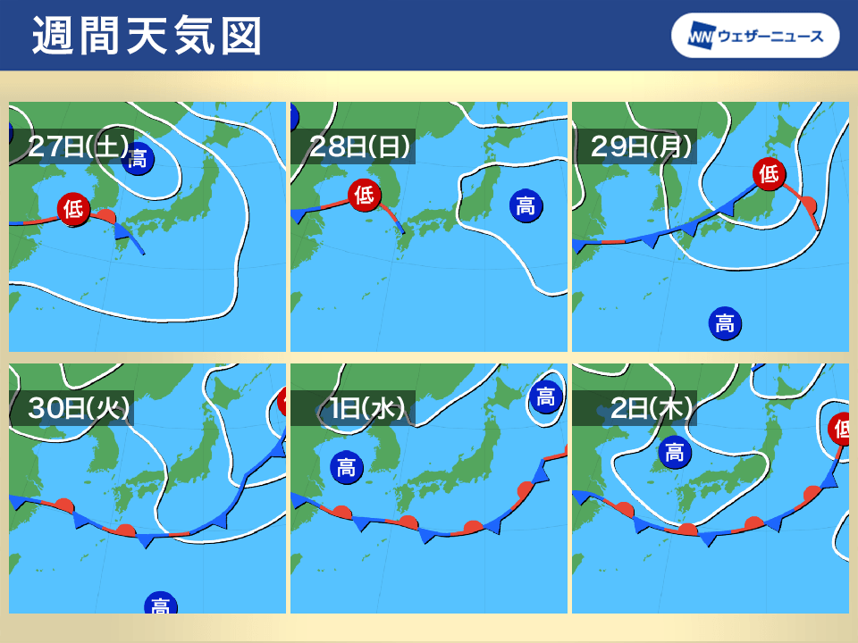 26日(金)から27日(土)は、高気圧に覆われて日差しの届くところが多くなります。