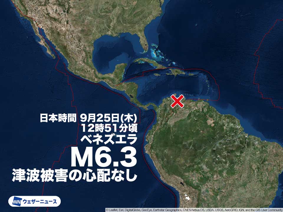 ベネズエラでM6クラスの地震相次ぐ 揺れによる被害のおそれ