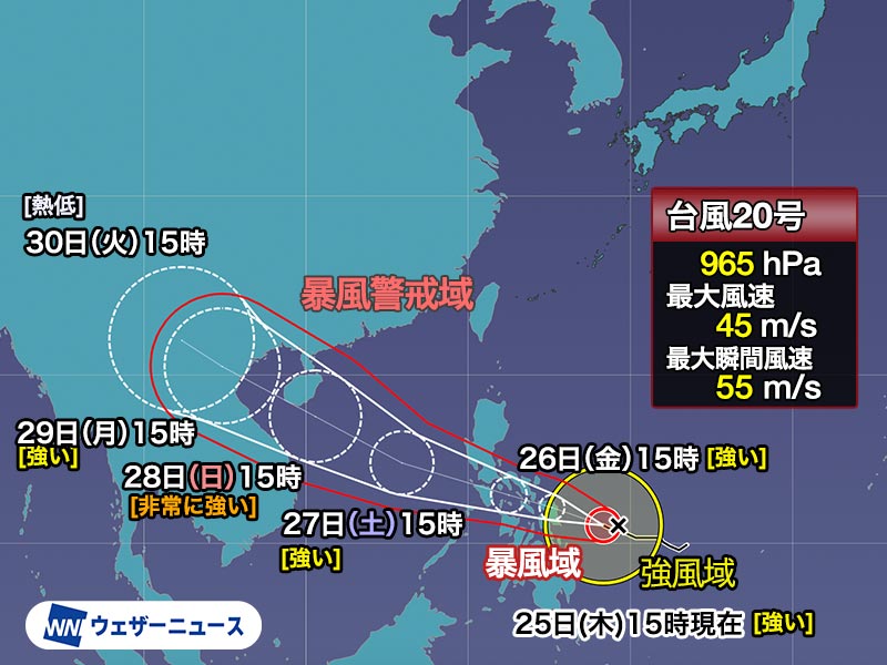 ▼台風20号 9月25日(木) 15時