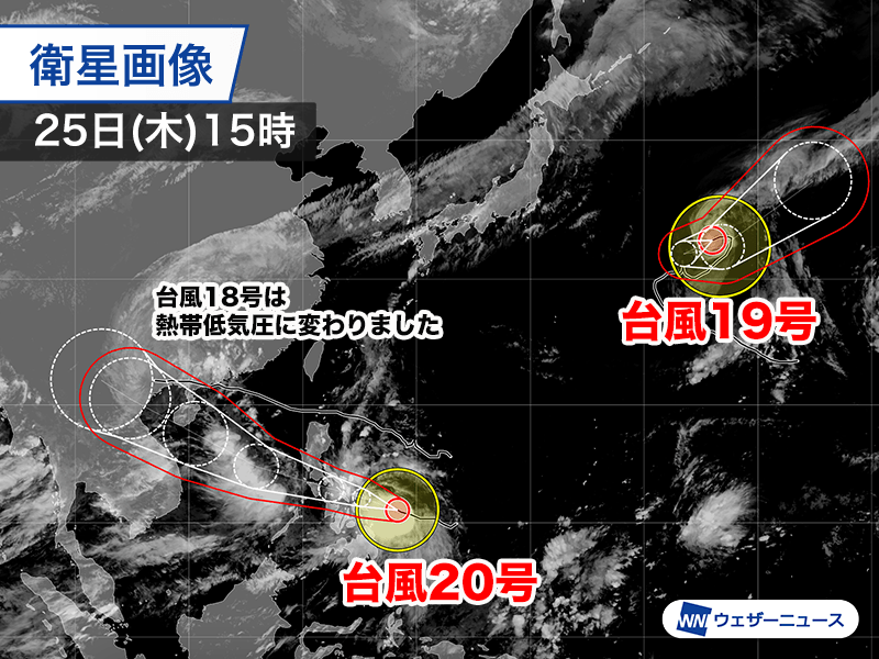 日本の付近に2つの台風 台風18号は熱帯低気圧に