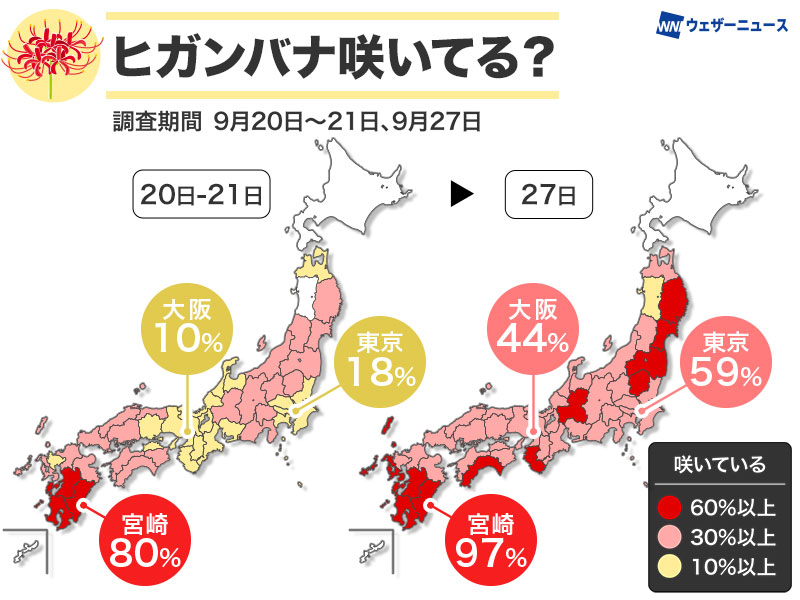 秋を彩る彼岸花が各地で見頃に 東京でも59%が開花