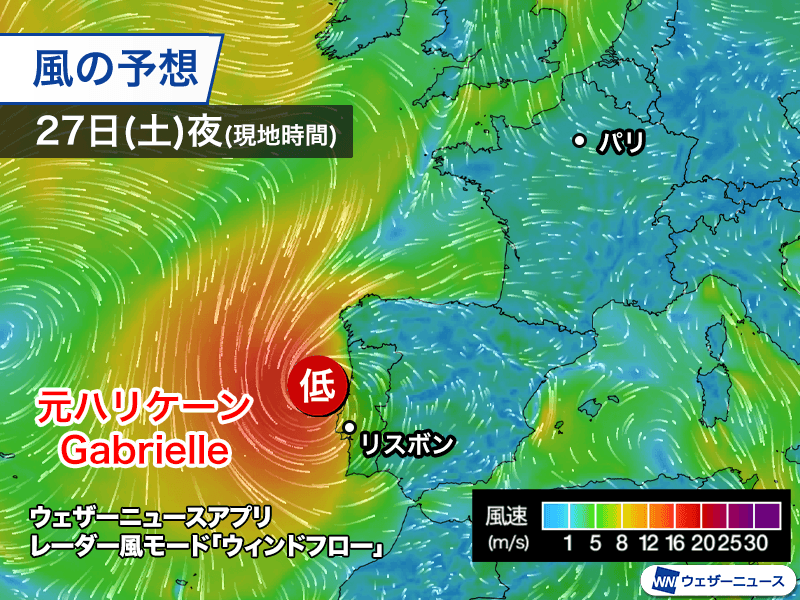 温帯低気圧になっても最大風速は30m/sと周辺では風が吹き荒れている状況で、27日(土)から28日(日)にかけてポルトガルに達する見込みです。