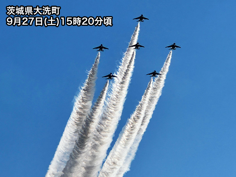 今日の大洗町周辺は、朝は雲が多く、飛行の実施を不安視する声もありましたが、時間が経つにつれてだんだんと雲は少なくなり、秋らしい澄んだ青空が広がりました。