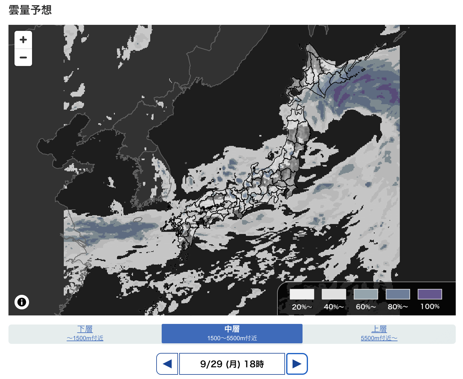 この先の「雲量」予想マップ