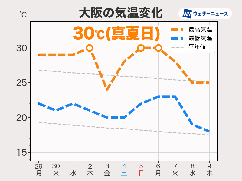 10月になっても真夏日予想 雨は秋雨前線の動向次第