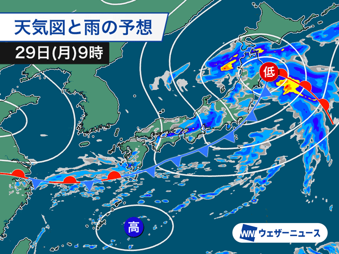 また、低気圧が太平洋に進んだ後は、西高東低の気圧配置のようなかたちになります。いったん雨が止んだり、降り方が弱まったりすることがあっても、夜にかけて雨の降りやすい状況が続く見込みです。家を出るときに降っていなくても雨具を持って行ったほうがよさそうです。