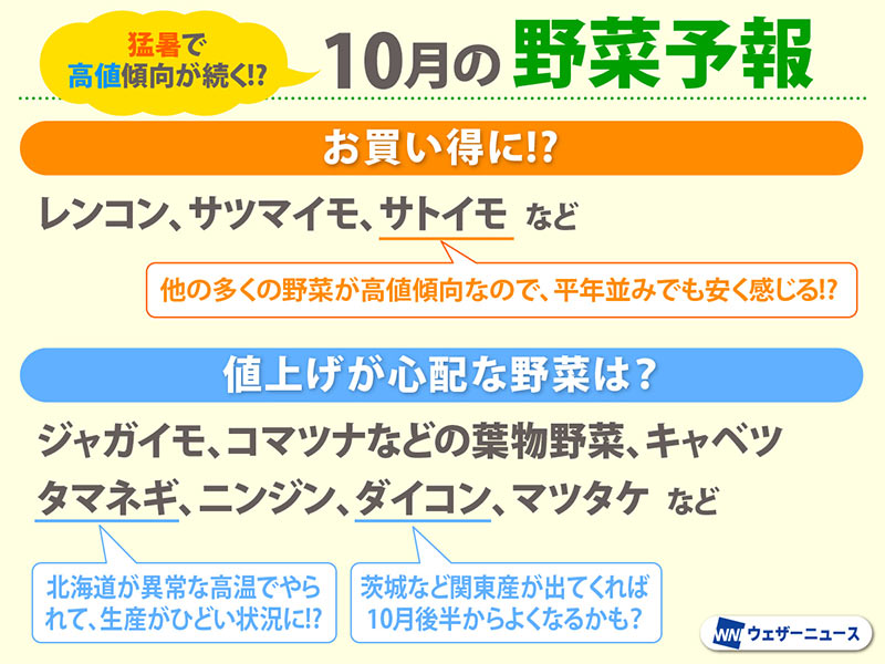 猛暑で高値傾向が続く!? 特に心配な野菜は!? 10月の野菜予報