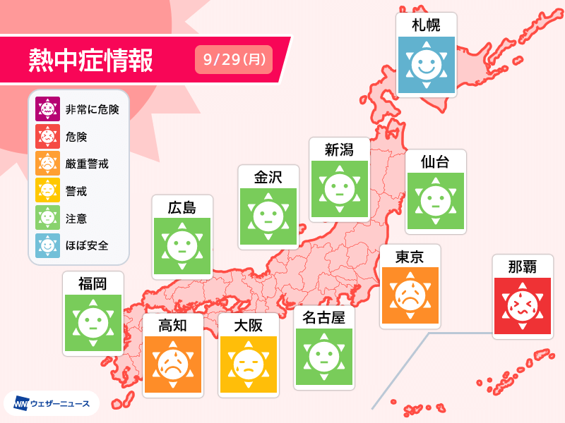 9月も最終週になりますが、半袖が活躍する厳しい残暑となりそうです。朝晩と昼間の体感差にも注意してください。