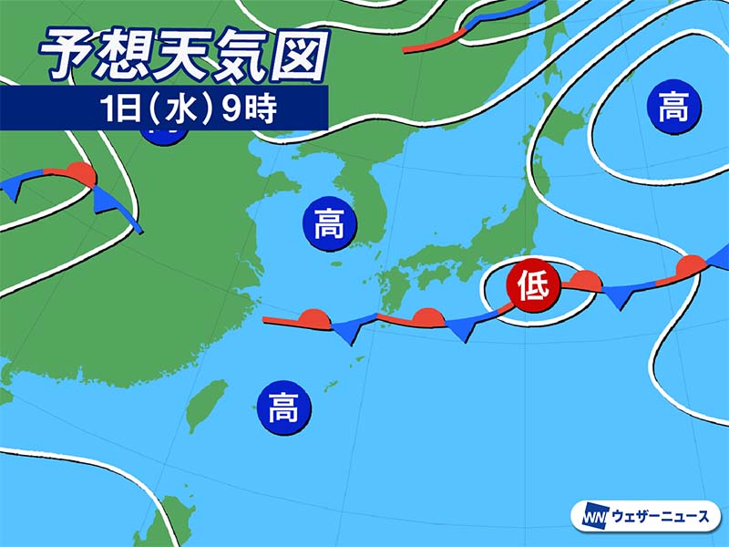 朝の冷え込みは弱まる一方で、昼間は気温が上がりにくく、気温変化は昨日30日(火)よりも小さくなります。