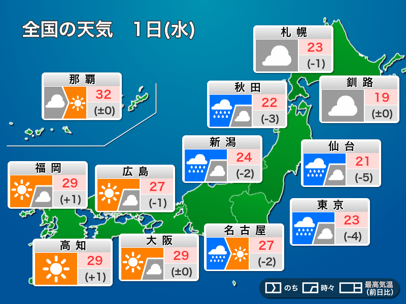 10月スタートは関東などで雨 西日本は晴れて汗ばむ暑さ