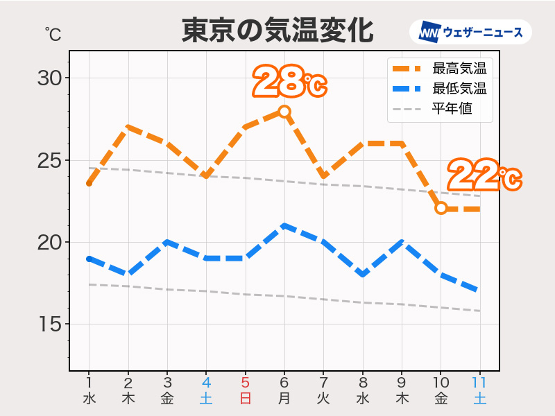 10月に入っても西日本や東海を中心に30℃前後まで気温の上がる日があり、関東も30℃に迫る日がある予想です。日中の残暑はまだ続きます。