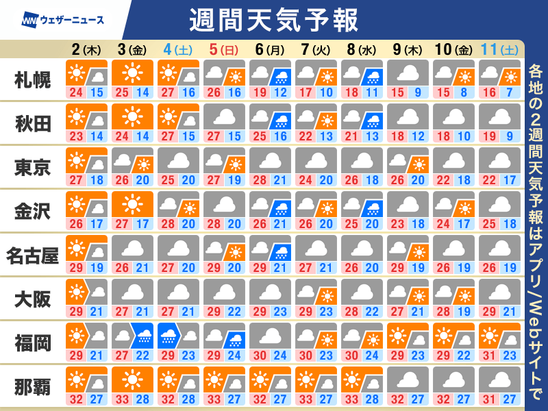 週間天気予報 短い周期で天気が変化 気温変動にも注意
