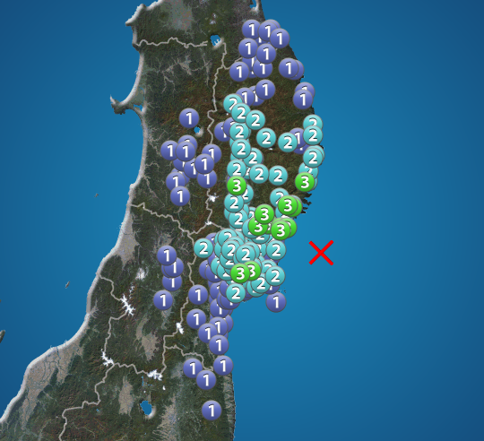 宮城県沖でM4.5の地震 岩手県と宮城県で震度3 津波の心配なし