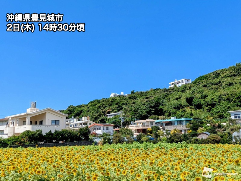 うるま市宮城島では、14時19分に35.0℃に到達しました。沖縄県内の今年これまでの最高気温は9月29日に国頭郡金武で観測した34.8℃なので、今年初めての猛暑日の観測になります。また、沖縄県内で10月に猛暑日になるのは初めてのことです。