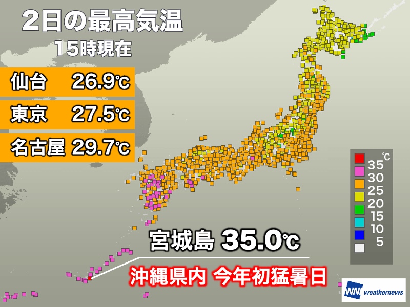 沖縄では今年初めての猛暑日に