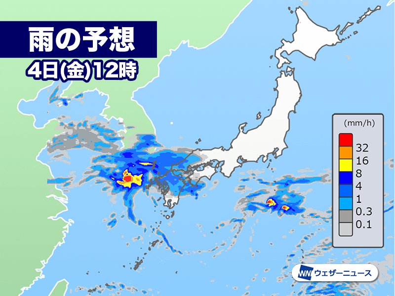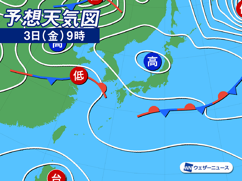 西日本は西の地域ほど雨 東日本や北日本は穏やか