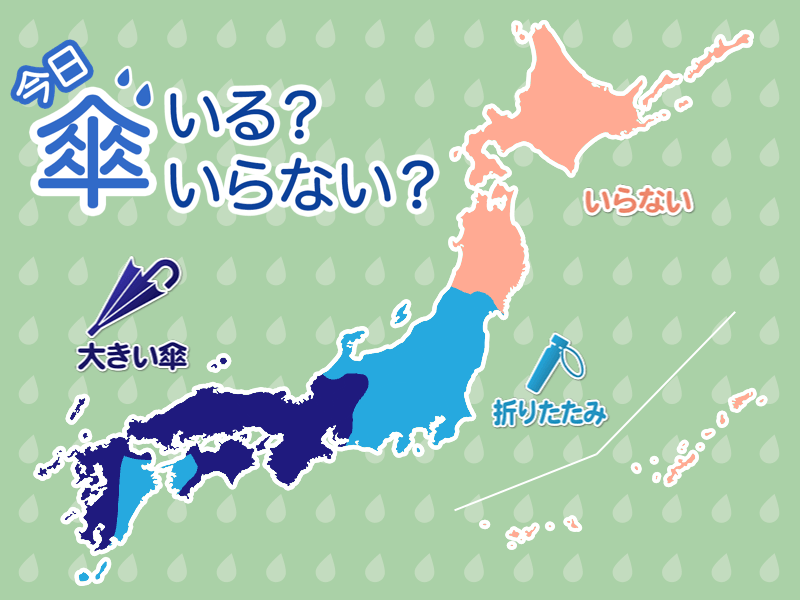 また、四国の西側や九州の太平洋側も、急な雨の可能性があります。