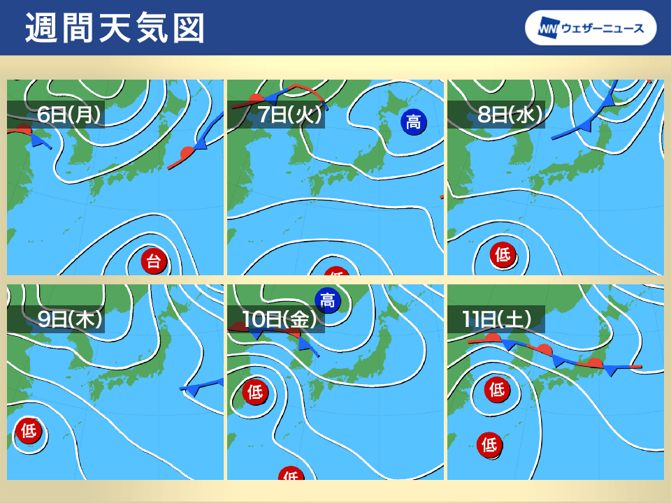 一方、東日本では暑い日と涼しい日が交互に訪れ、体感の差が大きくなる予想です。北日本では、この時期としては強い寒気の南下とともに気温が急激に下がる見込みで、季節の進みを実感できそうです。
