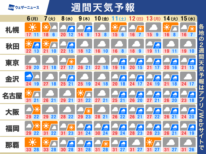 週間天気予報 天気は周期変化で西ほど暑さ継続 台風22号の動向に注意