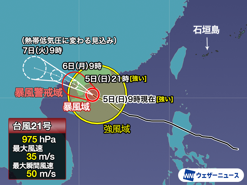 台風21号(マットゥモ)は強い勢力で大陸方面へ 日本への影響なし