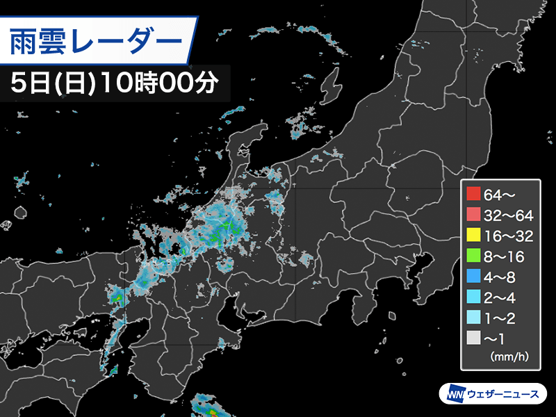 日差しが届いている関東南部や中国、四国、九州でも、小さな雨雲が流れこんで短時間の雨を降らせる可能性があります。洗濯物の外干しは空の変化に注意が必要です。