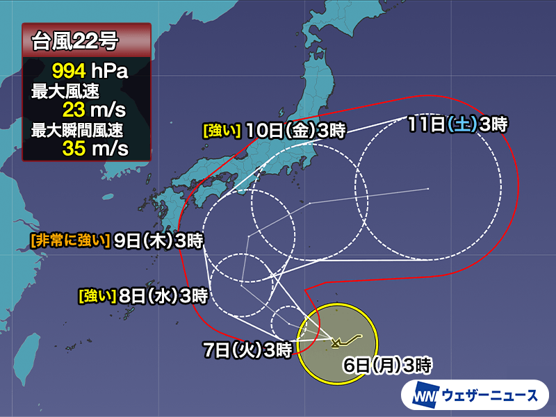 台風22号の今後の進路に注意