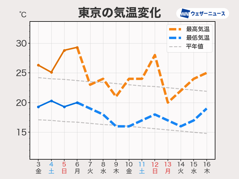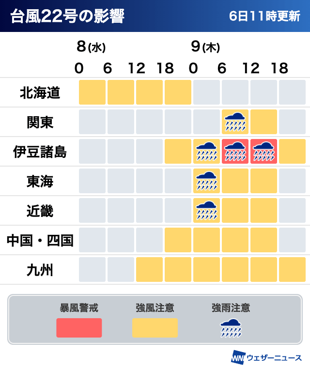 週間天気予報 台風22号は9日(木)に関東の南へ 三連休も気温アップダウン