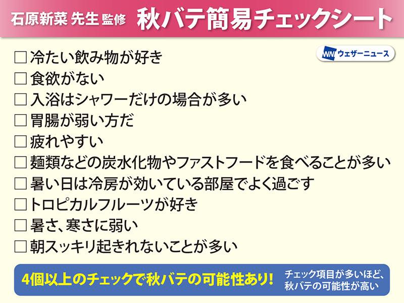 季節の変わり目は自律神経の乱れに注意 秋バテ簡易チェックシート