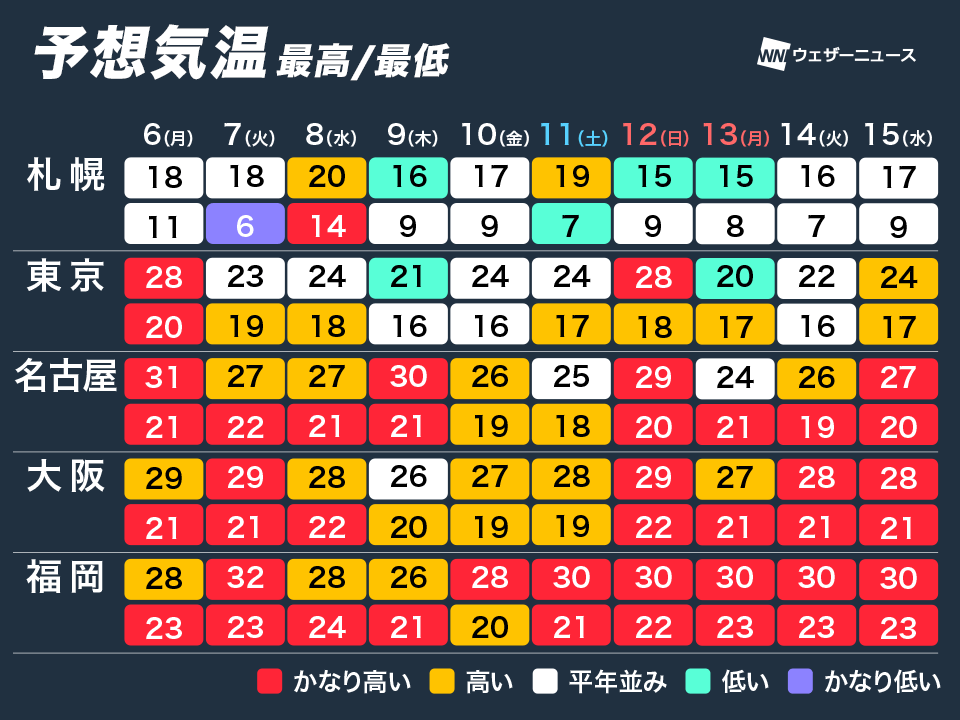 西日本では平年より高めの気温が続くため、長引く残暑で体調を崩さないよう注意が必要です。