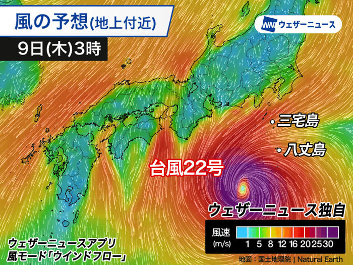 また、進路から離れていても高気圧との気圧差が大きく、本州でも風が強く吹く可能性があります。詳細は台風情報でご確認ください。