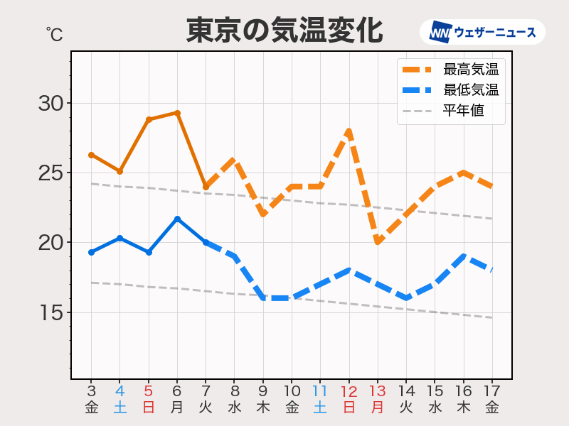 一方で、西日本では今週もしばらく気温は高い傾向が続きます。