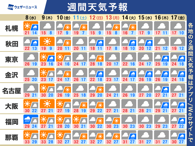 週間天気予報 台風22号は9日(木)に関東の南へ 三連休など気温変化大きい