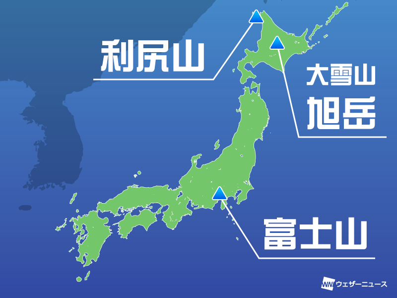 また、北海道の稚内の西海上に浮かぶ利尻島の利尻山は標高が1721mと高く、高緯度に位置するため早い時期に雪の降ることがあります。頻度は高くないものの、昨年は全国トップとなりました。