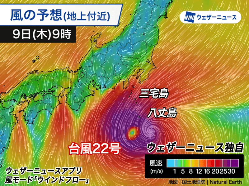 また、進路から離れていても高気圧との気圧差が大きく、本州でも風が強く吹く可能性があります。詳細は台風情報でご確認ください。