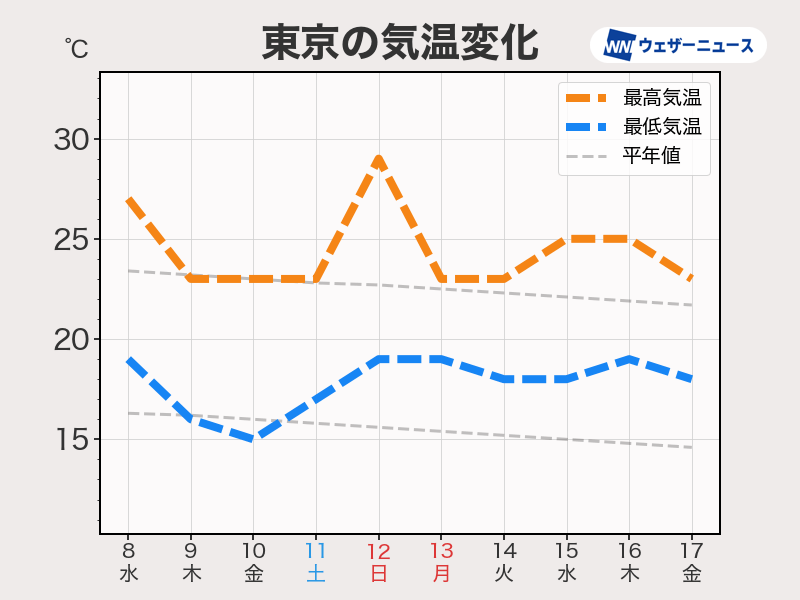 一方で、西日本では今週もしばらく気温は高い傾向が続きます。