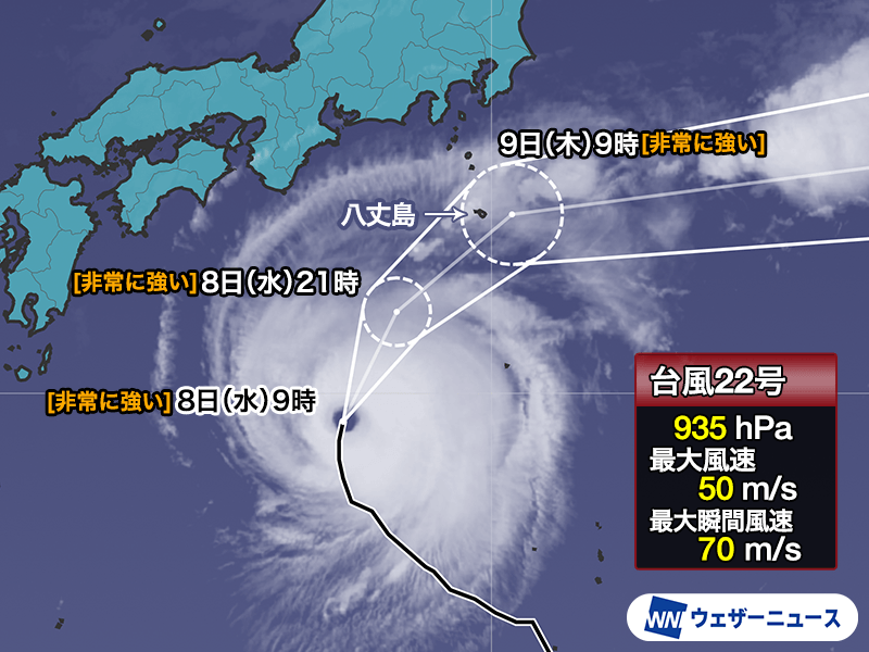 台風22号要因の特別警報発表の可能性 伊豆諸島南部は猛烈な風に厳重警戒を