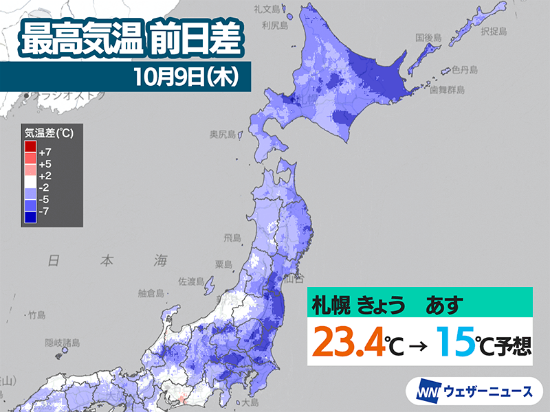今夜から北海道に寒気が南下 明日は昼間も肌寒い