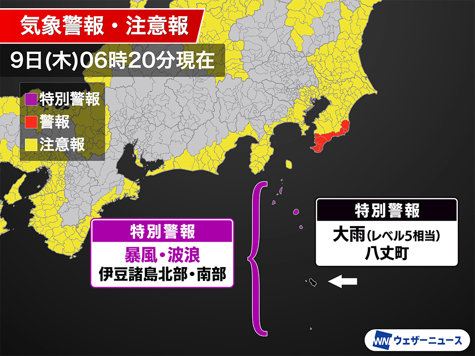 伊豆諸島に暴風・波浪特別警報 八丈町には大雨特別警報も