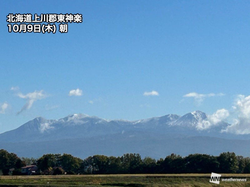 降水があれば雪になる条件となっていて、今朝晴れたことで冠雪が確認できたとみられます。平年より14日遅く、昨年よりは11日早い観測です。先日7日の利尻山に続き、今季2つめの初冠雪の発表となりました。