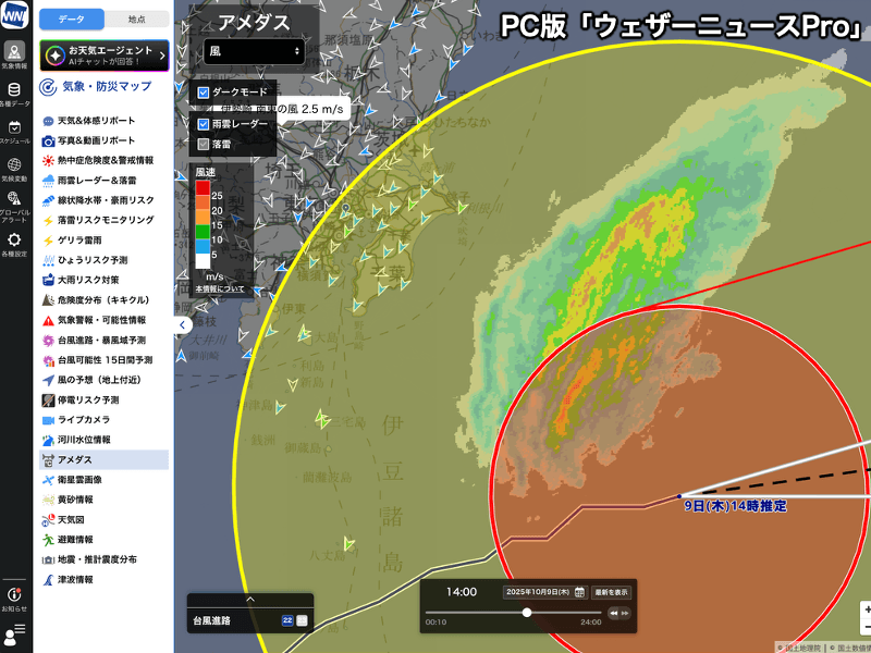レーダー 台風モードをアプリで見るレーダー 台風モード
